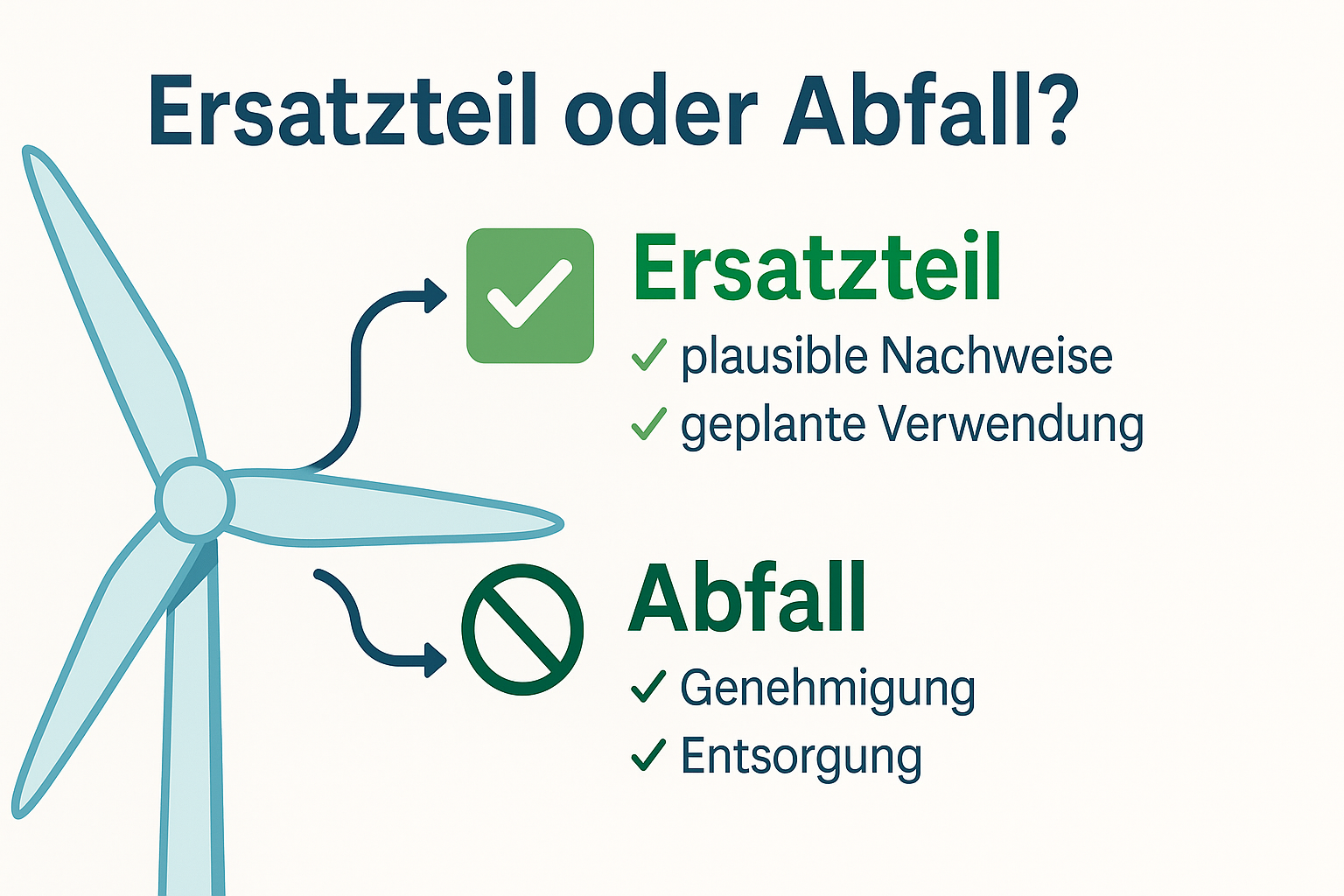 Ja, Betreiber müssen sich an klare Rahmenregeln halten. Aber: Ein pauschales „die Regeln sind eindeutig“ greift zu kurz. Eingelagerte Rotorblätter können rechtmäßig sein – oder abfallrechtlich unzulässig, je nachdem, ob echte Ersatzteilnutzung belegbar ist. Ohne Nachweise und bei längerer/umfangreicher Lagerung greift das Abfallrecht mit Genehmigungspflichten und strengen Auflagen. Gesetze im InternetBMU
